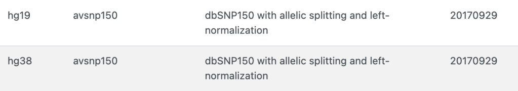(注意某些SNP的rsID有合并等原因,版本不同rsID注释结果不一定相同)